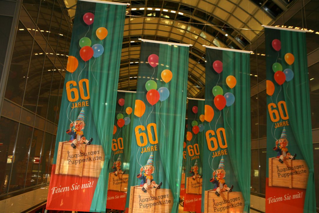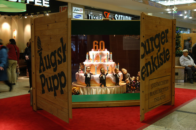 Für das 60-jährige Jubiläum gestaltete COREOGRAFIA PRODUCTION die Geburtstagsfeier der Augsburger Puppenkiste im Auftrag der City-Galerie Augsburg.