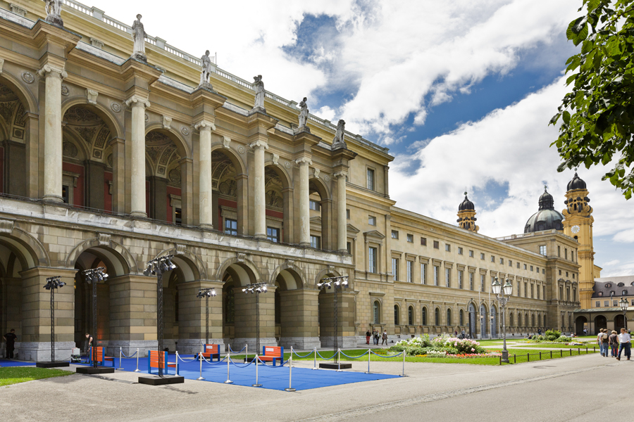 Gestaltung des Abendprogramms mit Inszenierung des Münchner Bank-Logos „Ihre Bank“