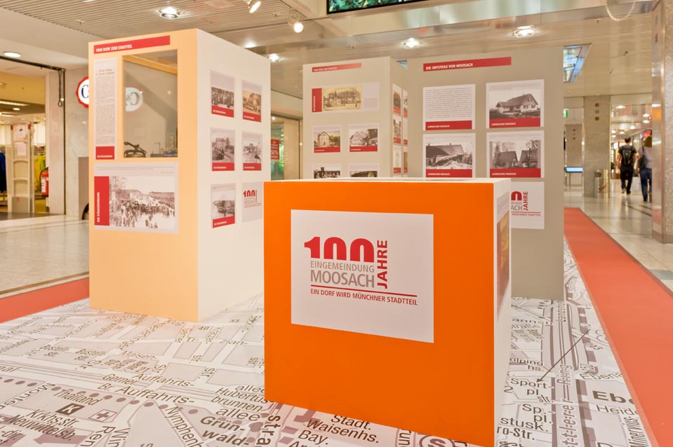 Für den Geschichtsverein München-Moosach e.V. konzipierte COREOGRAFIA PRODUCTION im Auftrag des Olympia-Einkaufszentrums München die Jubiläumsausstellung „100 Jahre Eingemeindung Moosach - Ein Dorf wird Münchner Stadtteil“
