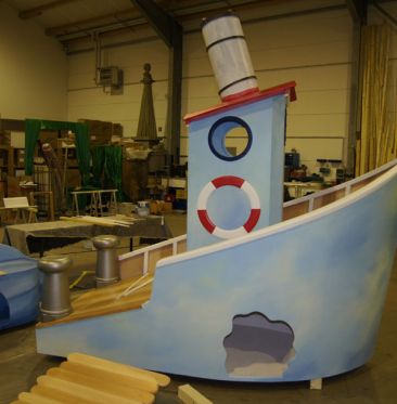 Bau, Umsetzung und Montage individueller Spielmöbel wie Spieldampfer mit Steuerrad, Kajüte und Öffnung für Schatzsuche, Aufgangsbrücke, Edelstahlrutsche, Federwipptiere, Balancierbalken, Sitzmöbel u.v.m.