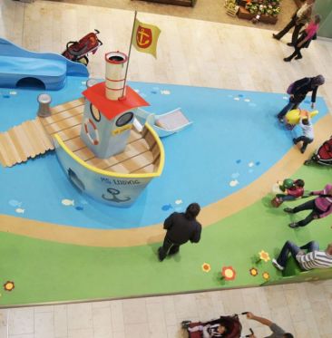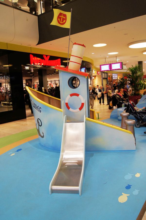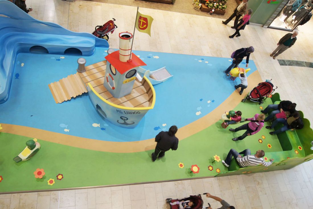 COREOGRAFIA PRODUCTION entwickelte eine fest installierte Kinderspielfläche für die Rhein-Galerie Ludwigshafen. Der Rhein diente als Inspiration.